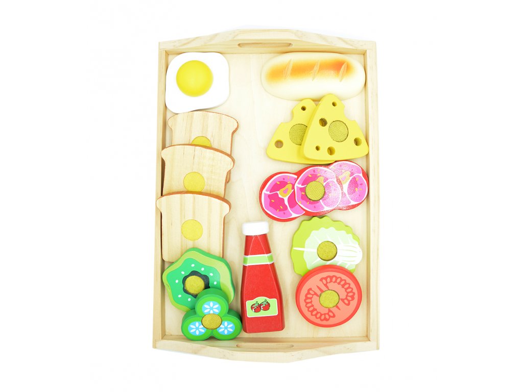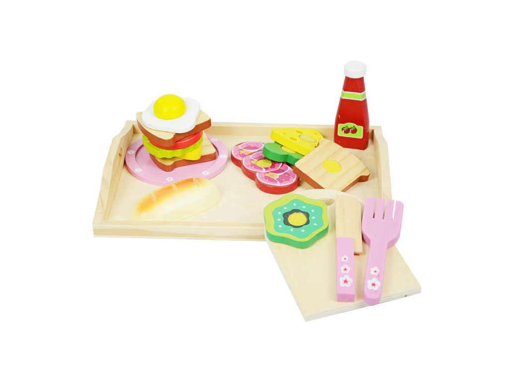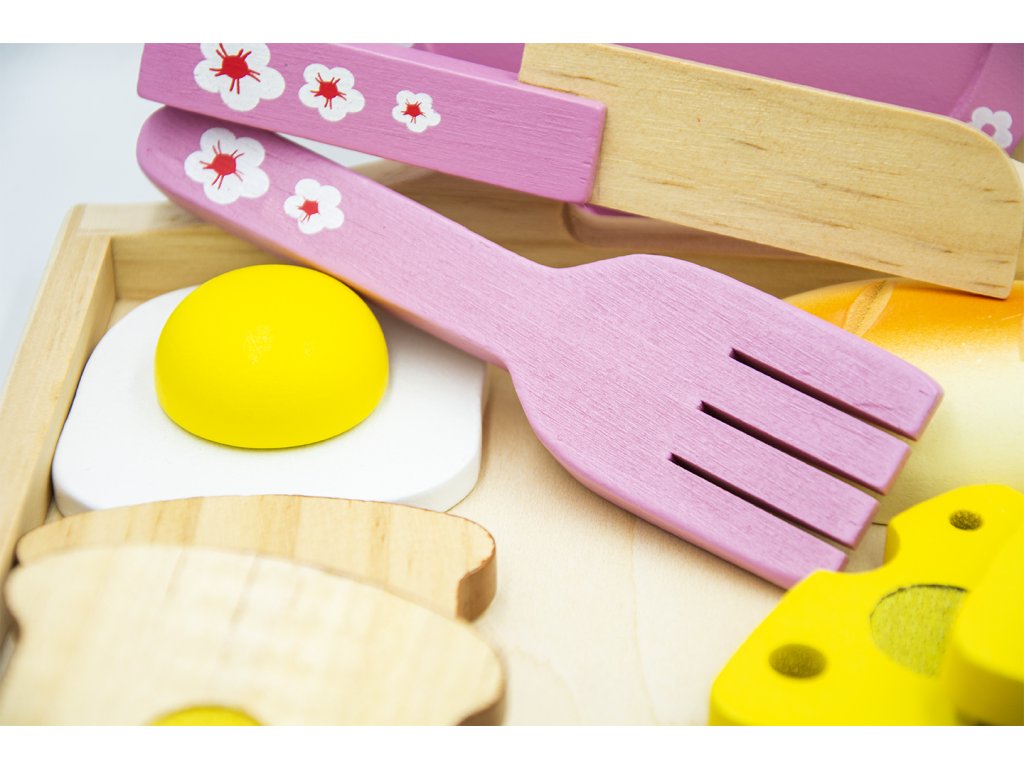 - Snídaňová sada dřevěných hraček je skvělá hračka, která vašemu dítěti umožní připravit chutnou snídani a poskytne mu skvělou zábavu! Sada obsahuje vše, co dítě potřebuje k přípravě chutného jídla pro své blízké. Sada je vybavena řadou vychytávek, které vám umožní vytvořit mnoho pokrmů a zpříjemnit si hraní. Celá sada je uspořádána na elegantním dřevěném podnosu.