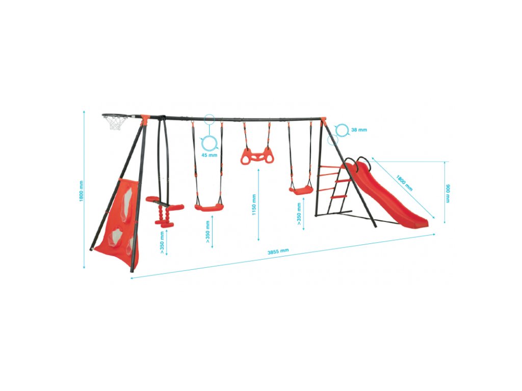 Díky různorodému vybavení je dětské kovové hřiště Max skvělým místem pro aktivní zábavu a pohyb na zahradě, a to pro děti všech věkových kategorií.