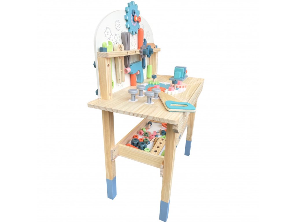 Je čas na tvoření, opravování a objevování! Dětský dřevěný pracovní stůl JUNIOR je ideální hračka pro děti, které fascinují nástroje, stroje a všechno, co se děje „za kulisami“ při opravách a stavění. Teď mohou malí kutilové vstoupit do světa opravdového majsterkování – bezpečně, radostně a kreativně.