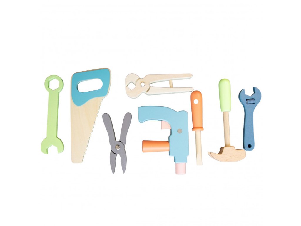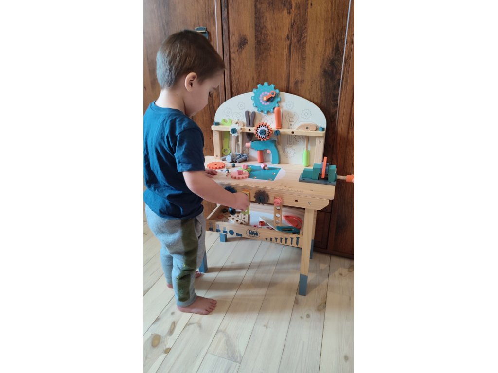 Dětská dílna je testovaná na bezpečnost, malovaná netoxickými barvami a vhodná pro děti od 3 let (obsahuje malé dílky).