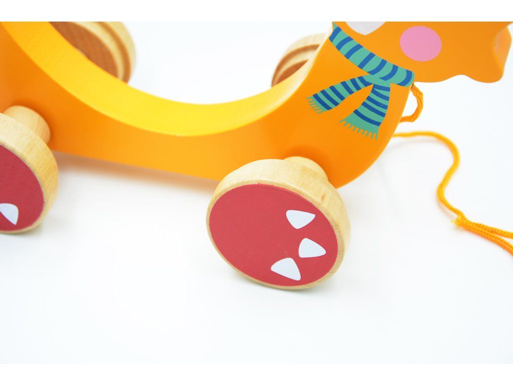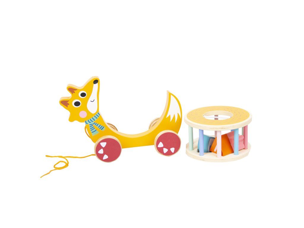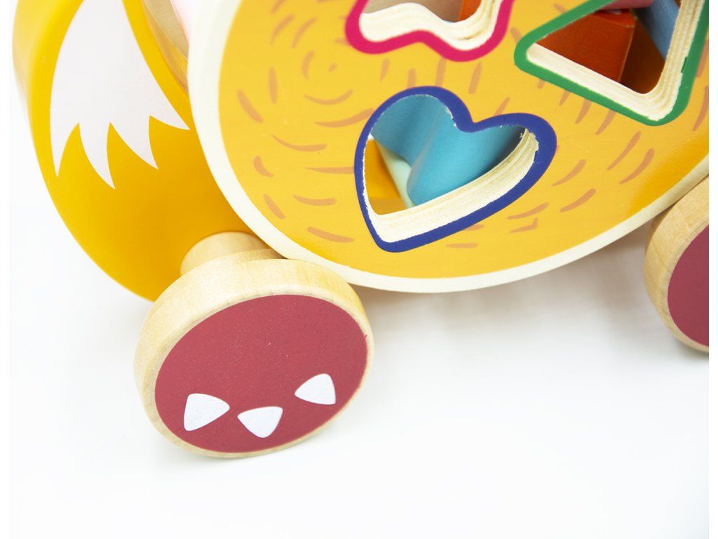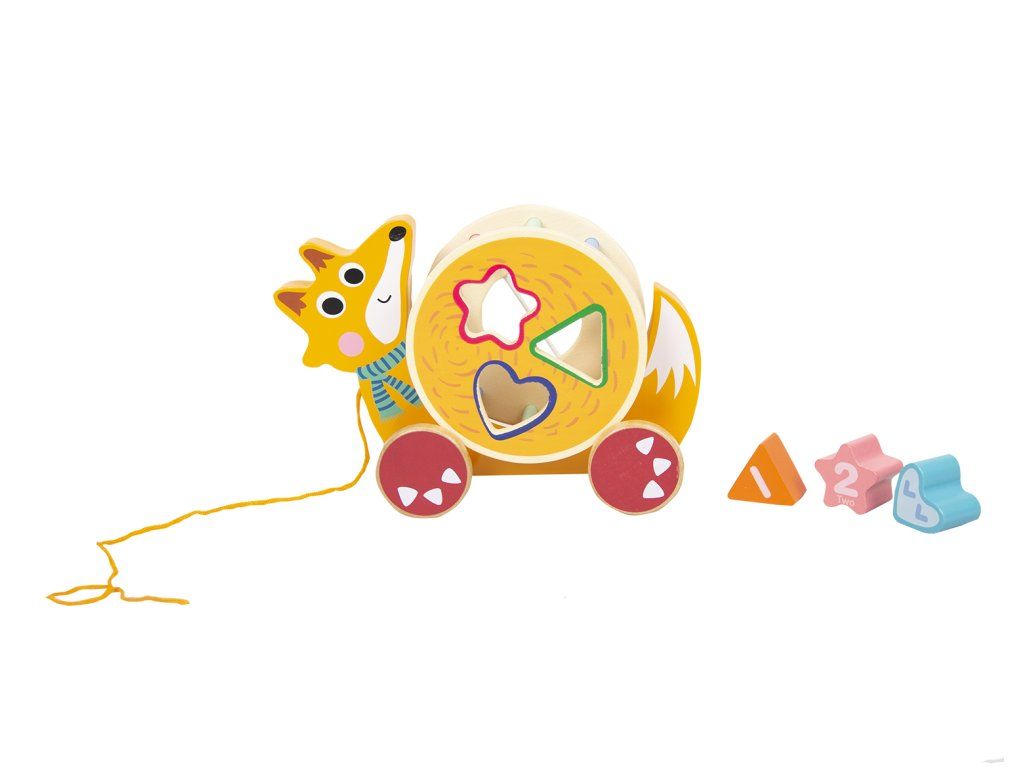 Dřevěná hračka na provázku ve tvaru lišky je tím nejlepším dárkem pro nejmenší děti! Otvory umístěné na kolečku učí děti rozeznávat tvary a barvy.Provázek připojený k hračce podporuje batolata v učení chůze a rozvíjí jejich úchopový reflex.