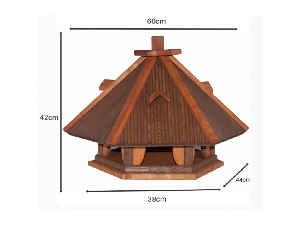 Dřevěné krmítko obdélníkového tvaru vám umožní pozorovat ptáky ze všech stran!