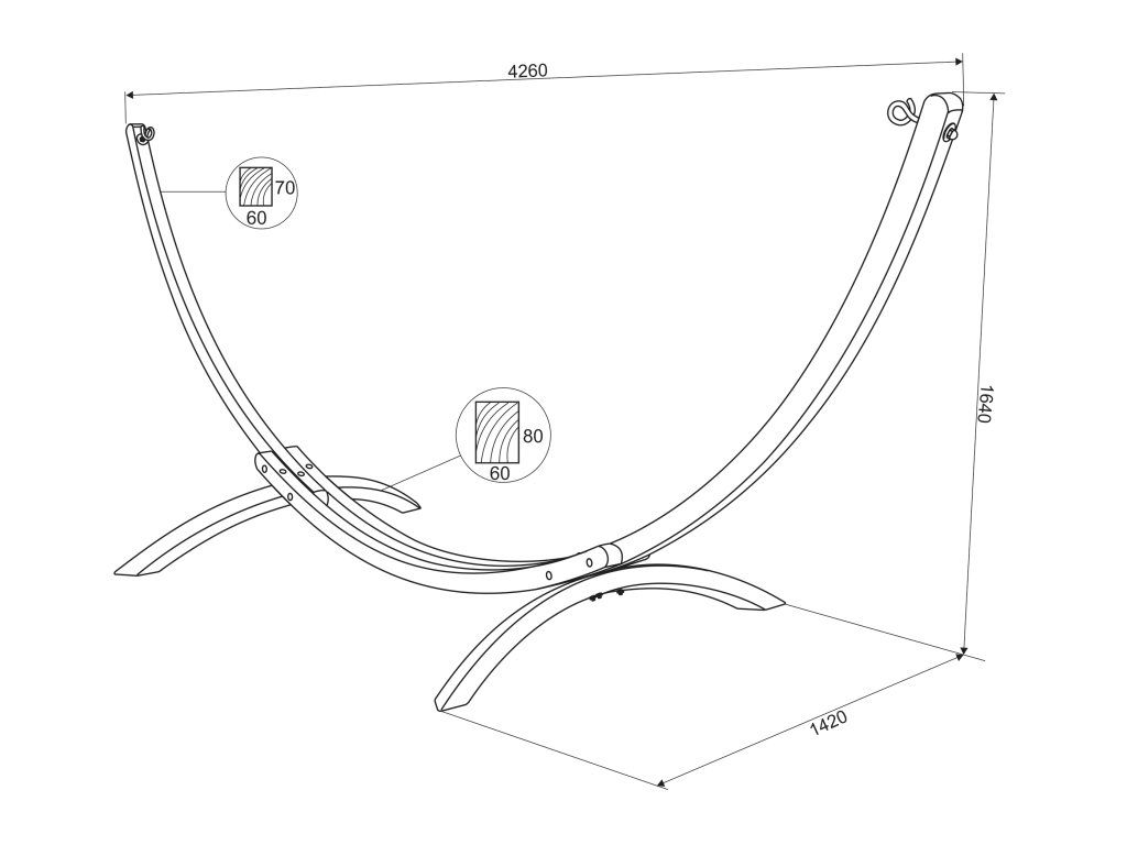Tato konstrukce je vyrobena z prvotřídního dřeva, které prošlo procesem tlakové impregnace, což mu zajišťuje vysokou odolnost vůči vlhkosti, houbám a škůdcům. Díky tomu si můžete být jisti, že i při vystavení nepříznivým povětrnostním podmínkám zůstane pevné a funkční po mnoho let. Dřevěná část je slepená za tepla polyuretanovým lepidlem, což ještě více posiluje její strukturu.
