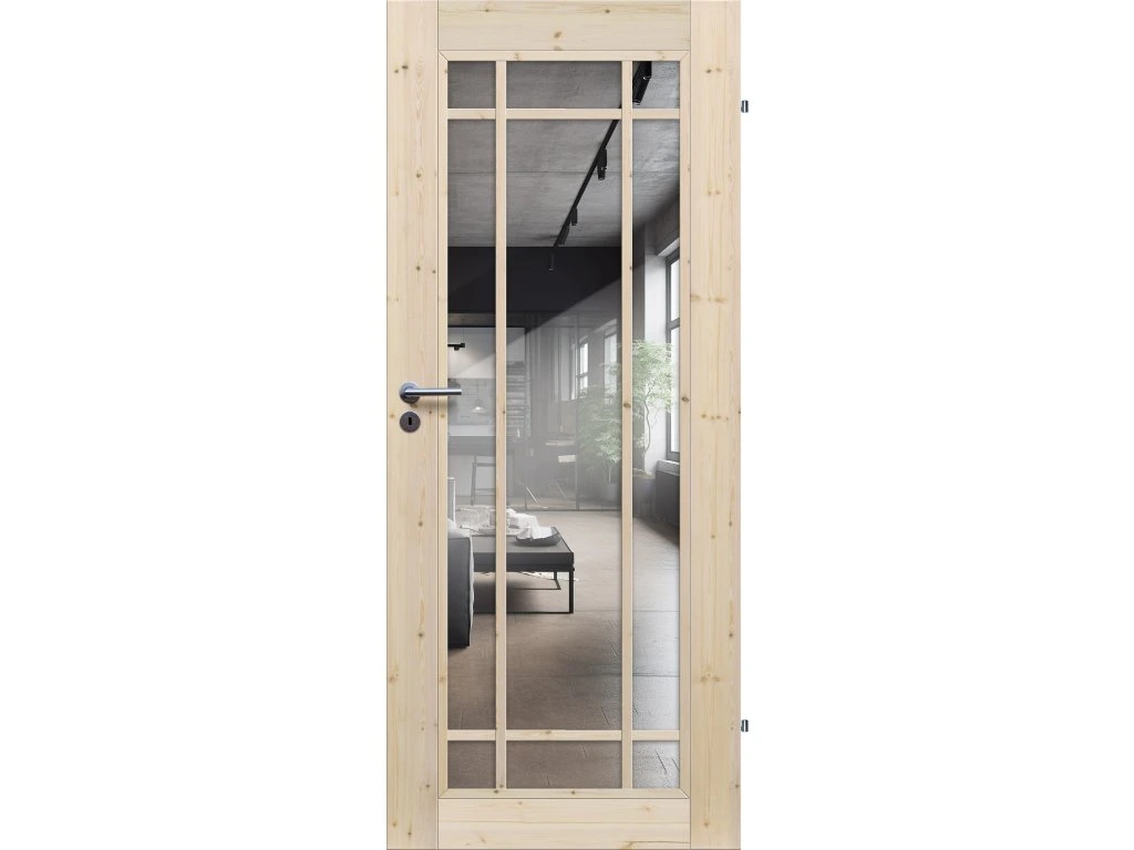 Dřevěné interiérové dveře INDUSTRIAL jsou výjimečné nejen svým vzhledem, ale také velmi příznivou cenou. Dveře z této série jsou vyrobeny z lepeného masivního borovicového dřeva. Rámy dveří jsou vyrobeny z konstrukčně stálé masivní lepené borovicové desky se suky.