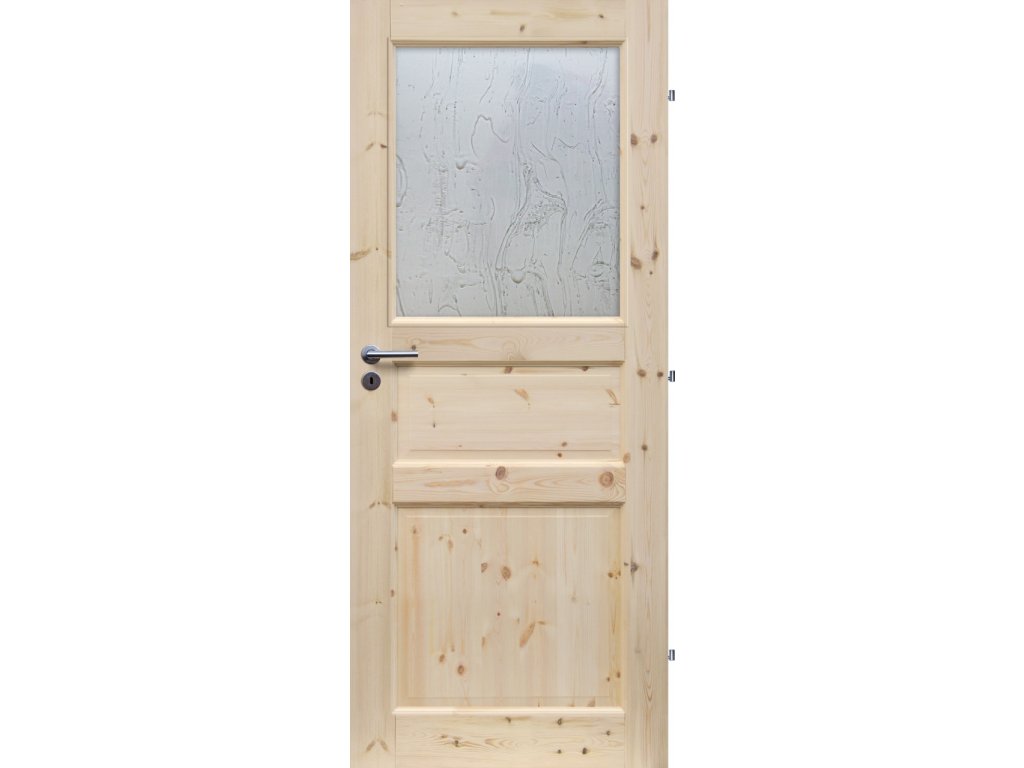 Dřevěné interiérové dveře Radex jsou výjimečné nejen svým vzhledem, ale také velmi příznivou cenou. Dveře Radex z této série jsou vyrobeny z lepeného masivního borovicového dřeva. Rámy dveří jsou vyrobeny z konstrukčně stálé masivní lepené borovicové desky se suky. Výplně rámů - kazety -jsou z borovicové lepené masivní sukaté desky.