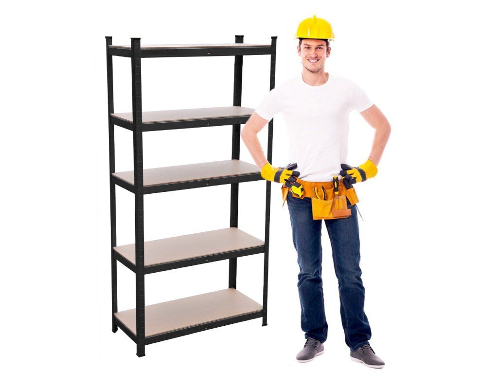 Regál nabízí 5 pevných polic z MDF desky (5 mm), které unesou až 150 kg na polici, tedy celkem 750 kg. Díky rozměrům 180×90×40 cm poskytuje dostatek úložného prostoru i pro těžší vybavení, aniž by působil masivně.