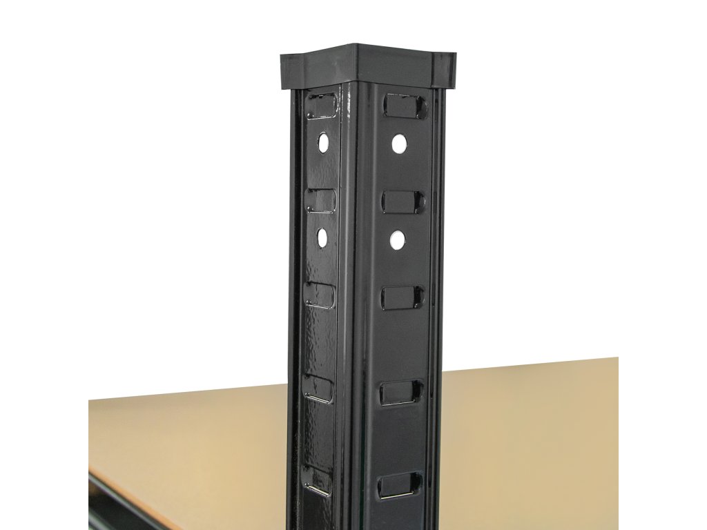 Dodejte své garáži, dílně nebo skladu moderní vzhled a perfektní organizaci. Tento černý kovový regál 4iQ kombinuje odolnost, funkčnost a elegantní design. Matná černá povrchová úprava chrání konstrukci před vlhkostí a zároveň dodává regálu atraktivní vzhled, který se hodí do každého prostoru.