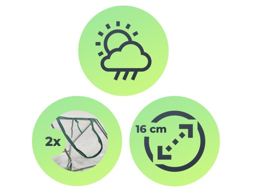 - Fólie na rámu zajišťuje vytvoření mikroklimatu s optimálními podmínkami pro růst rostlin.
